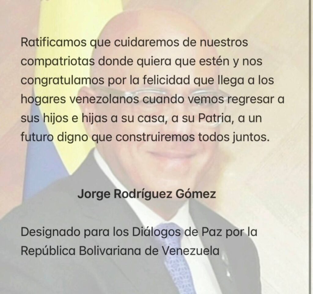 El presidente de la Asamblea Nacional (AN), Jorge Rodríguez, delegado del gobierno del mandatario Nicolás Maduro para el diálogo, anunció la reanudación de los vueltos de repatriación de migrantes venezolanos desde Estados Unidos.