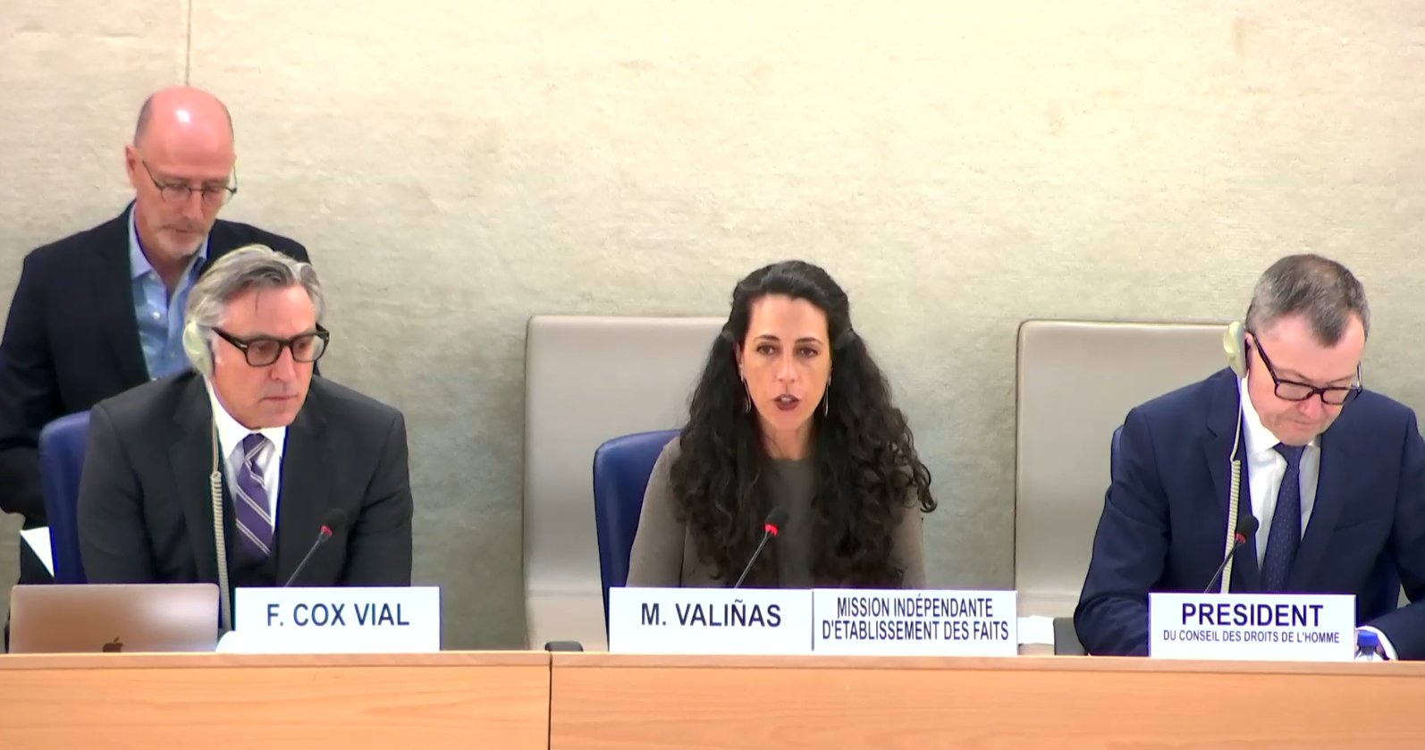 «El Gobierno de Venezuela sigue llevando a cabo acciones que constituyen el crimen de lesa humanidad de persecución política, cometido en relación con los delitos de encarcelamiento o privación grave de la libertad física, y otros crímenes. La Misión seguirá investigando la comisión de éste y otros delitos de acuerdo a su mandato», expresó Valiñas.