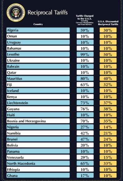 Finalmente, el presidente de EE.UU., Donald Trump, anunció la lista de aranceles «para todo el mundo», en lo que denominó como «el día de la liberación económica de Estados Unidos.