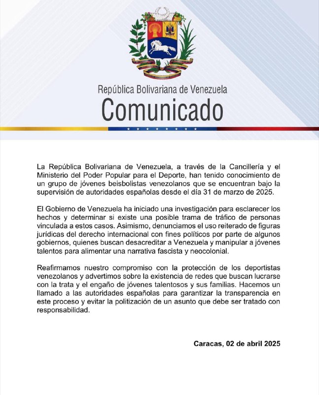 «Venezuela ha iniciado una investigación para esclarecer los hechos y determinar si existe una posible trama de tráfico de personas vinculada a estos casos», dijo la cancillería en un comunicado, al alertar sobre redes que buscan engañar a jóvenes.