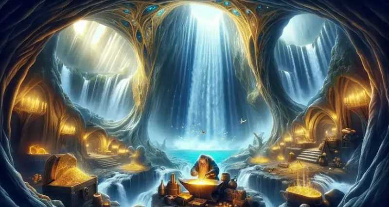 historias comienzan a extenderse por los Países Bajos, Francia, Alemania, Inglaterra, por todas partes. Una de las más famosas es una historia del siglo V sobre un enano llamado Andari Anvari. Es un enano amargado y tacaño que vive bajo una cascada.