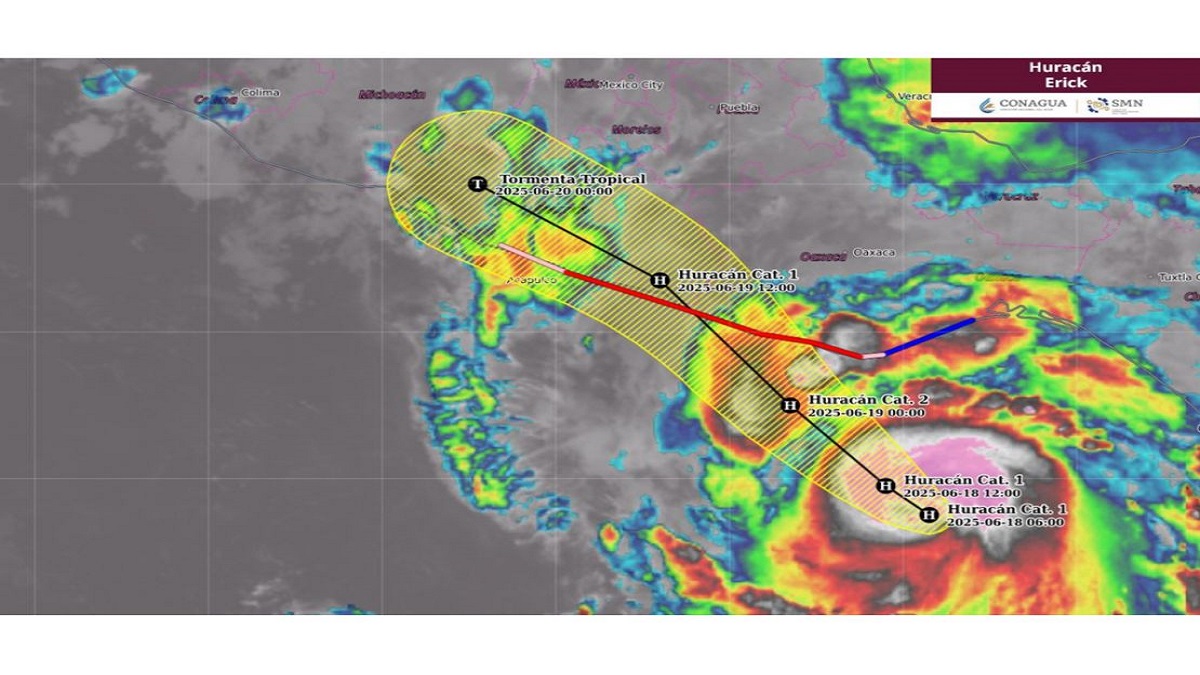 El huracán Erick alcanzó la categoría 3 y avanza a la 4 este miércoles y se dirige hacia las costas de Oaxaca y Guerrero, en el sur de México, donde podría tocar tierra durante la madrugada del jueves con mayor fuerza, según el Servicio Meteorológico Nacional (SMN),