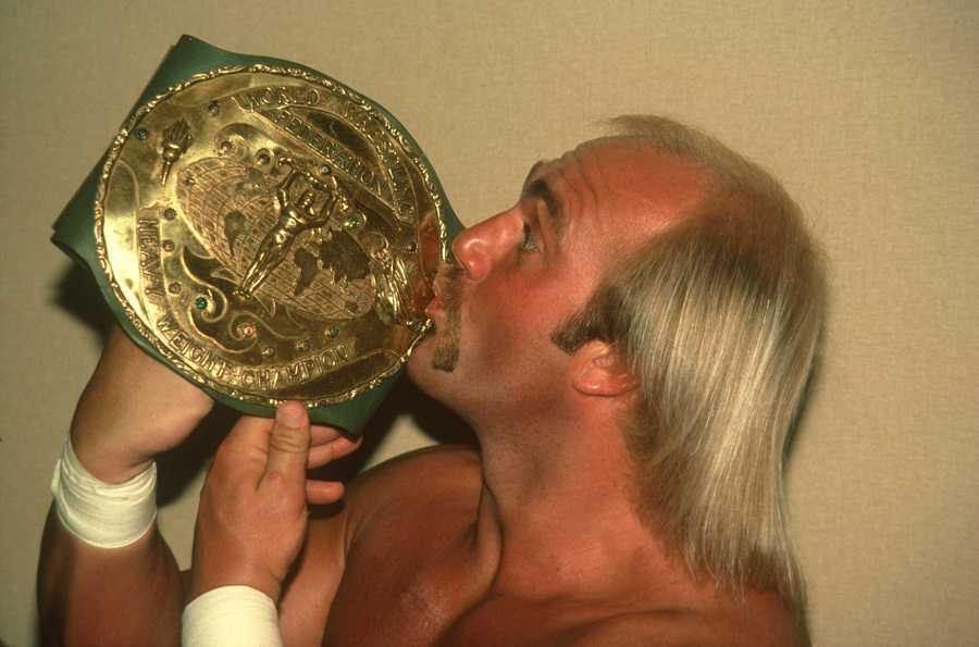 Hulk Hogan celebra su victoria en el Campeonato de Pérdida de Peso de la WWF el 23 de enero de 1984 en el Madison Square Garden de Nueva York. (Foto de WWE/WWE vía Getty Images)