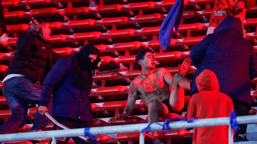 En medio del caos, los argentinos escalaron a la tribuna alta, agredieron a los chilenos y despojaron de sus ropas a seguidores de la U. Imágenes en las redes sociales mostraban a otros golpeándose con palos o bastones e incluso hay registros de un chileno saltando al vacío al verse acorralado por hinchas de Independiente.