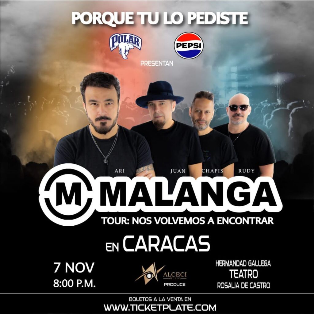 Igualente, cabe menciomar que la preventa para el concierto de Malanga a través del portal www.ticketplate.com Un show producido por Alcei Music en el emblemático Teatro Rosalía de Castro de la Hermandad Gallega de Caracas, espacio que ha sido testigo de grandes momentos culturales y que esta vez se vestirá de música para celebrar el regreso de Malanga.