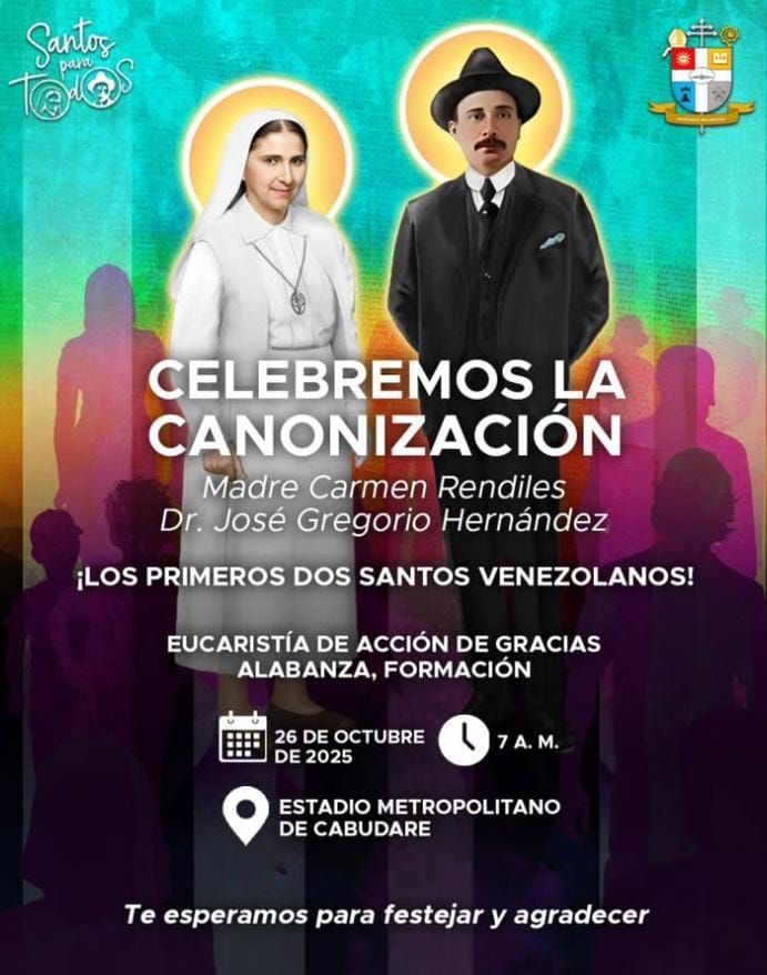 Este 26 de octubre en el estadio Metropolitano de Cabudare, estado Lara, la feligresía de la Arquidiócesis de Barquisimeto llevará a cabo la misa de acción de gracias a Dios por la canonización de la madre Carmen Rendiles y el doctor José Gregorio Hernández, los dos primeros santos de Venezuela quienes vivieron la caridad en grado heroico.