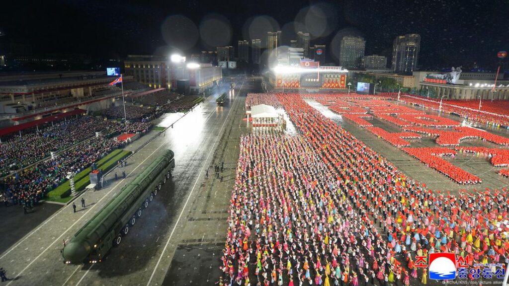 «Cuando el destacamento del misil balístico intercontinental Hwasong-20, el sistema de armas nucleares estratégicas más poderoso, Corea del Norte entró en la plaza, el entusiasmo del público alcanzó su punto máximo», describió la agencia estatal de propaganda KCNA, sobre el desfile de la noche anterior, que contó con la presencia del gobernante Kim Jong-un.