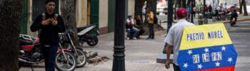 La líder de la oposición venezolana María Corina Machado fue honrada con el premio Nobel de la Paz 2025 por su compromiso con la democracia venezolana. En Caracas los venezolanos buscaban darle un sentido más pragmático al galardón. La celebración fue silenciosa, porque el miedo a los cuerpos de represión de la administración de Nicolás Maduro, pesa