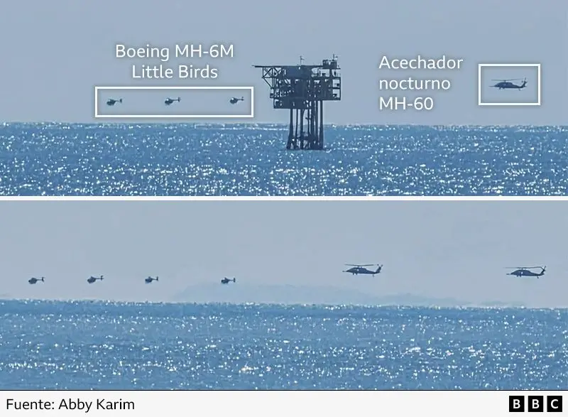 Las imágenes difundidas en redes sociales también muestran helicópteros militares operando frente a las costas de Trinidad y Tobago.