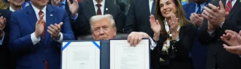 La ceremonia de la firma tuvo lugar horas después de que la Cámara de Representantes aprobara la medida por 222 votos a favor y 209 en contra. El Senado ya había aprobado la medida el lunes.