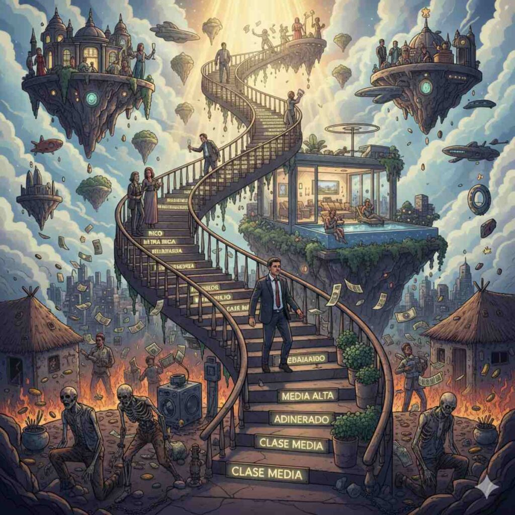 Esta escalera financiera es una forma simple pero reveladora de clasificar el estatus económico de las personas según su ingreso mensual en dólares americanos (USD)
