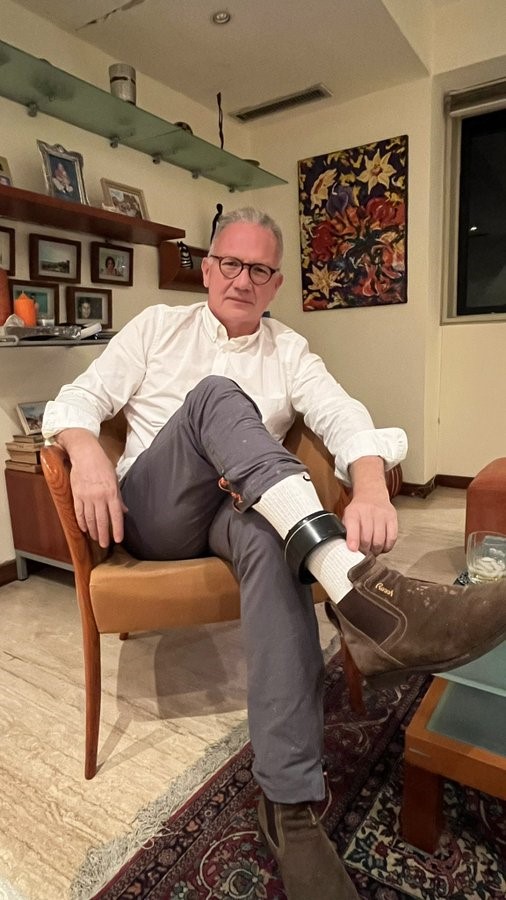 María Constanza de Rocha, esposa de Perkins Rocha, abogado y dirigente de Vente Venezuela, publicó este lunes una fotografía de él con un grillete electrónico en el tobillo derecho.