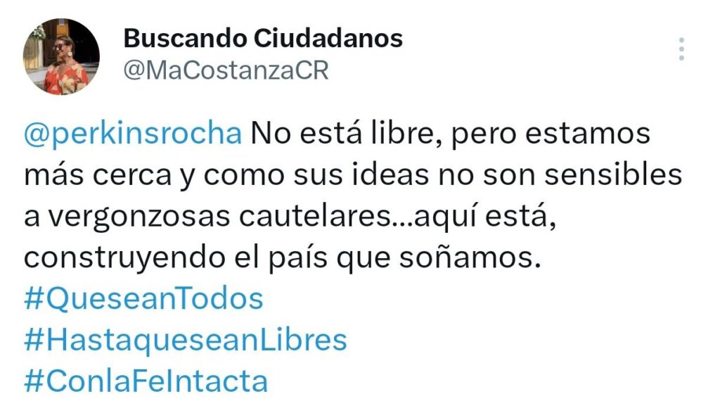 «Perkins Rocha no está libre, pero estamos más cerca”, publicó Constanza en su cuenta en X.