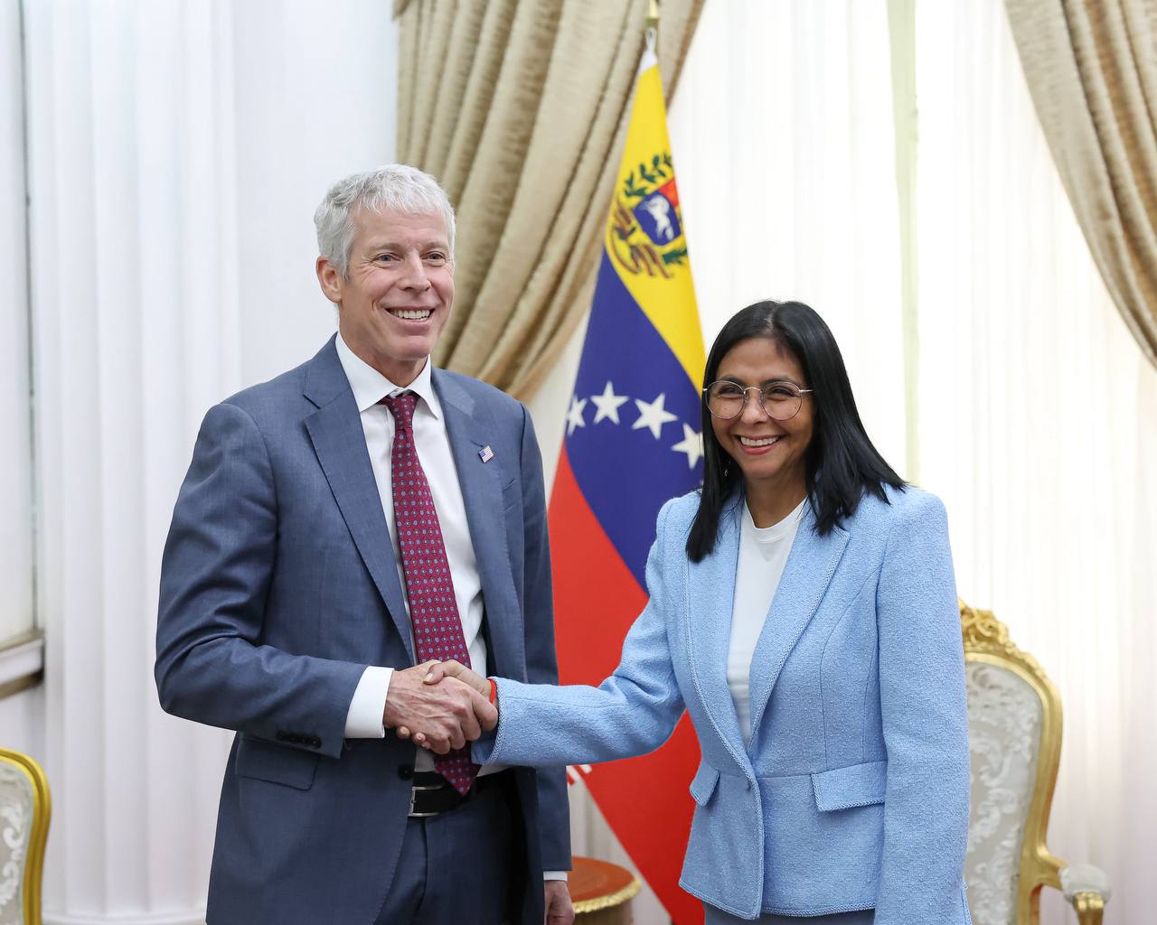 La presidenta encargada, Delcy Rodríguez, recibió la tarde de este miércoles en el Palacio de Miraflores al secretario de Energía de los Estados Unidos (EE.UU.), Christopher Wright.