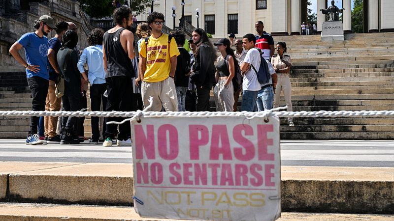 El malestar también llegó a los campus universitarios. Un grupo de estudiantes realizó una sentada en la escalinata de la Universidad de La Habana para protestar por el impacto de la crisis en su educación.