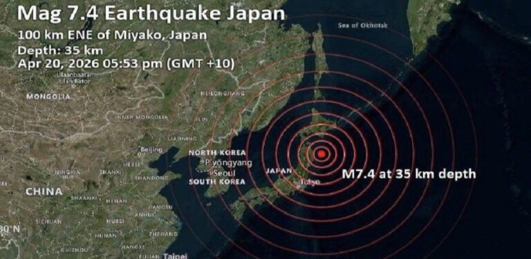 Un terremoto de magnitud 7,4 sacudió este lunes el norte de Japón y provocó olas de 80 centímetros, informó la agencia meteorológica nacional (JMA), que prevé olas de hasta tres … Sigue leyendo Terremoto de magnitud 7,4 sacude Japón y provoca tsunami con olas de 80 cm