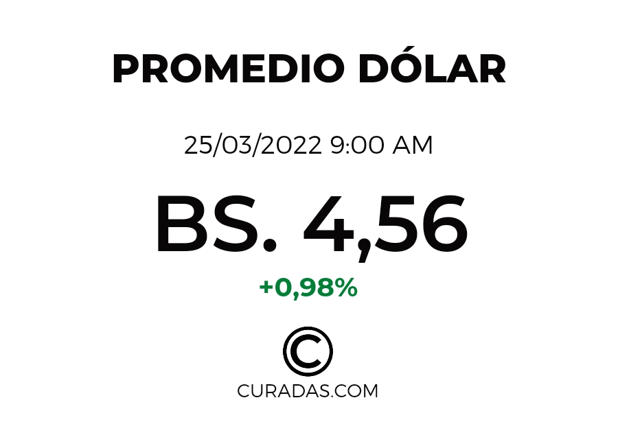 Dólar Promedio: Bs. 4,56 | +0,98%