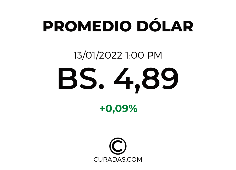 Dólar Promedio: Bs. 4,89 | Dólar BCV: 4,64 | Euro BCV: Bs. 5,65 | Bitcoin: US$ 43,734.40