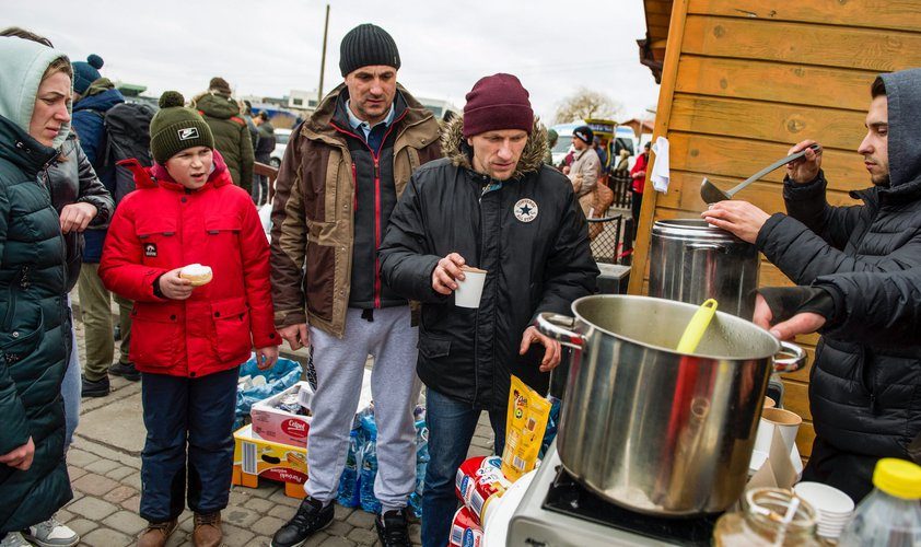 El flujo de coches y transporte de mercancías saliendo de Ucrania se ha reducido, pero los camiones y furgonetas hacen varios kilómetros de cola para cruzar la frontera hacia territorio ucraniano
