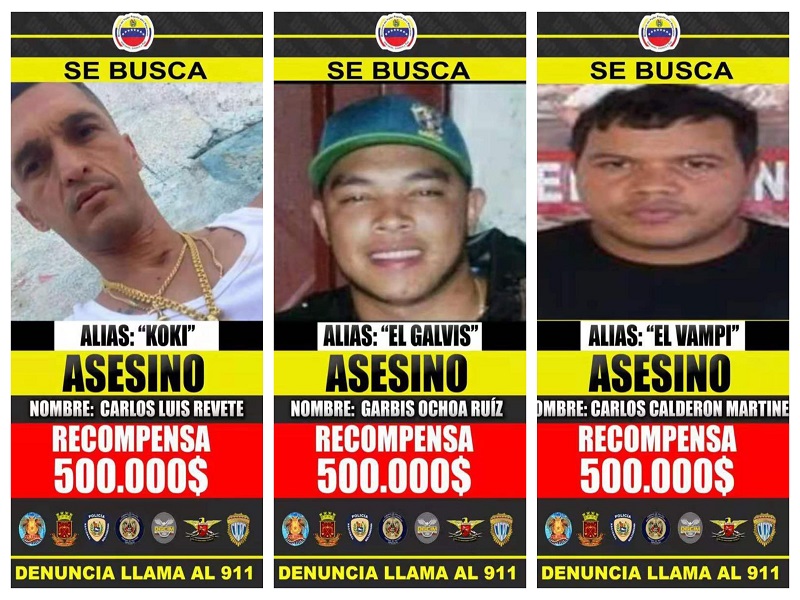 Luego de varias horas de enfrentamientos con las bandas armadas comandadas por Koki, Vampi y Galvis, la administración de Nicolás Maduro, ofrece una recompensa de 500.000 dólares por cada uno.